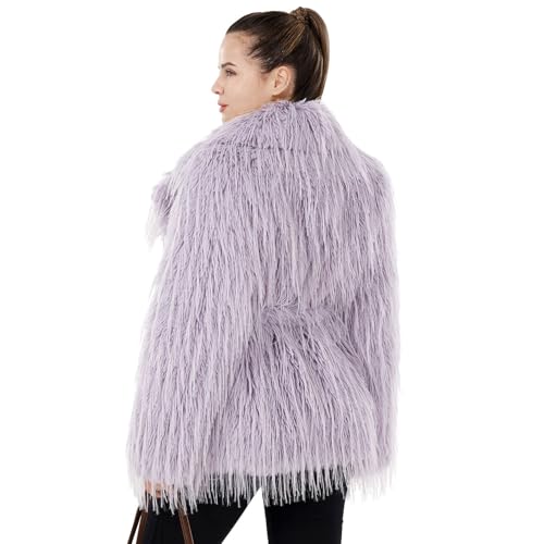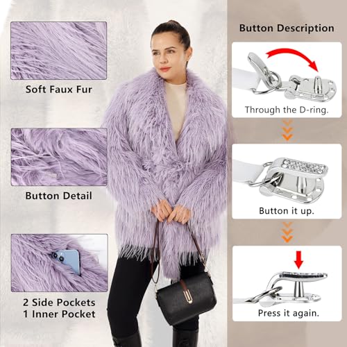 Women's Fluffy Faux Fur Coat cozy Lapel Shaggy Cardigan Outwear Open Front Fall Winter Jacket with Belt & Pockets