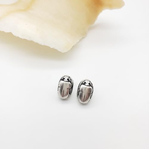 Egyptian Scarab Post Earrings - Silver Finish - Made in USA 6
