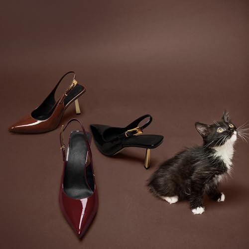 • Sling Back Heels for Women: Slingback with the shiny metal heel and metallic buckle, Available in black, burgundy and brown, adding a touch of elegance to any outfit.