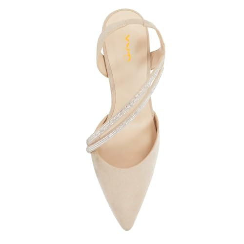 XYD Women's Thin Mid Heel Slingback Pumps Pointy Closed Toe Sandal Crystal Strappy contemporary Event Dress Shoes