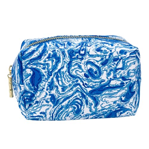 modern Design: This travel toiletry case, featuring Lilly's vibrant The Hottest Spot pattern, measures 10.5 x 4.5 x 10.7 inches (26.7 x 11.4 x 27.1 cm)Convenient Organization: Includes a liquid gold interior with a zip pocket and three nested cosmetic bags with coordinating patterns for all your travel essentialsDurable Construction: Made from zippered full-color printed leatherette with sturdy carrying handles, ensuring lasting style and easy transport on every tripElegant Details: Features strong gold zippers, a gold plaque logo, and a matching zipper, adding a touch of sophistication to your travel gearPractical Size: The main compartment's generous size accommodates all your toiletries, while the nested bags keep everything organized and accessible Perfect for everyday use. superior materials and excellent craftsmanship ensure long-lasting durability.