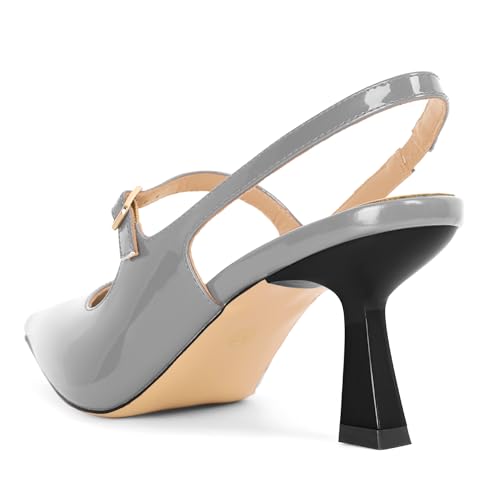 Soireelady Women's Slingback Pumps Pointed Toe Kitten Heels Buckle Strap Slip On Low Heels Wedding Dress Shoes 2.5 Inches Grey US Size 7 1