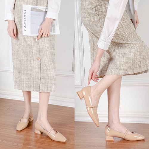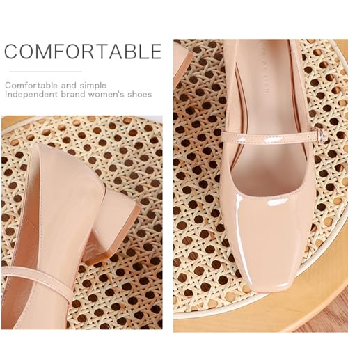 Zeberfi Women's Patent Leather Low Chunky Heel Mary Jane Pump Shoes Closed Square Toe Shallow Mouth Dress Shoes with Adjustable Strap Buckle Business Wedding 5