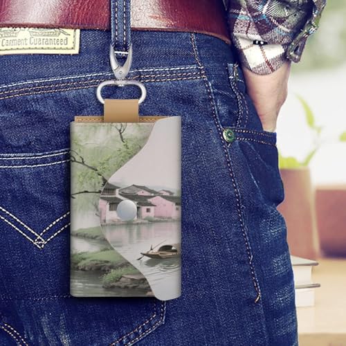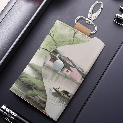 sizzling ! Leather Keychain Spring Orioles on The Willow Bank Keychain Keychains Key Chain with 6 Hooks Can Be Used As A Credit Card Holder Coin Purse Key Bag