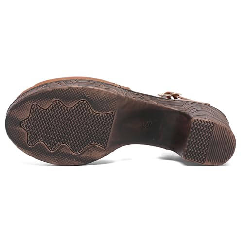 Altxic Women's Closed Round Toe Hollow Out Vamp Ankle Strap Buckle Low Block Chunky Heels Sandals 4