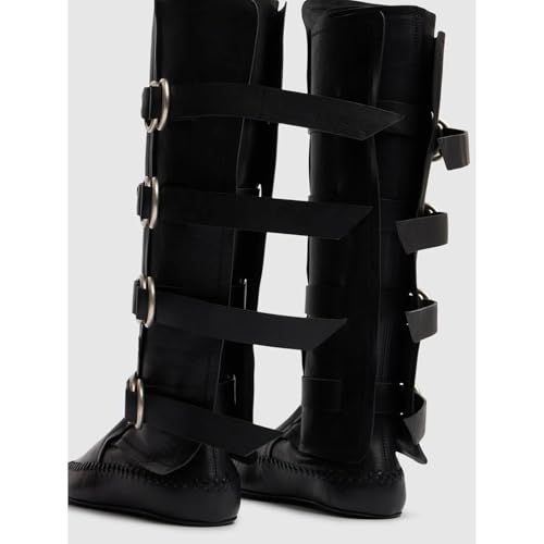 Sole material: RubberShaft height: Knee HighOuter material: Polyurethane (PU)Closure type: Buckle[Hand-Stitched Multi Buckle Strap Punk Boots]: These flat slouch boots for women knee high feature a adjustable straps with metal tension buckle closure design for a snug fit. Comfort round toe for a elegant look or a sleek high-street vibe.[Main Material]: Soft and comfy PU with handmade whipstitched upper; Non-slip rubber sole; Soft breathable insole for comfortable to wear.[Approx MEAS (tested size 6)]: 1cm/0.39 flat heel provides all-day comfort. Black medieval renaissance shoes wide calf knee-high boots[Closure Type]: Wide-calf knight boots Y2k western long boots match adjustable buckle straps design easy to take on and off without any hassle. Fashion punk style goth moto tall boots gives you perfect boost in height and reassure that they are wearable all day long with comfort. As long as you wear it, you will be get many compliments.[Occasion]: These Y2k street rave flats renaissance punk knee high boots pirate costume cosplay shoes perfect for casual,street,Halloween,masquerade,exhibition,concert,party,stage show,wedding,travel,festival,walk,shopping,work,office. Stylish elegant low heels gothic punk slouch boots will make the perfect and most fashion gift for all your loved ones and for every occasion. Perfect for everyday use. premium materials and excellent craftsmanship ensure long-lasting durability.