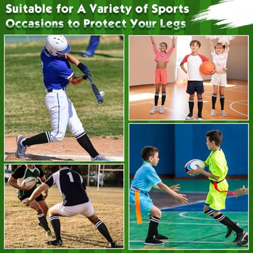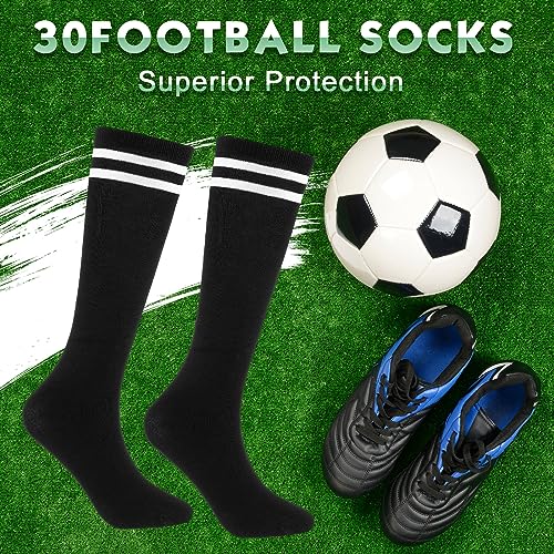 Hercicy 30 Pairs Kids Soccer Socks Sport Team Knee High Football Athletic Striped Hockey Socks for 5-12 Years