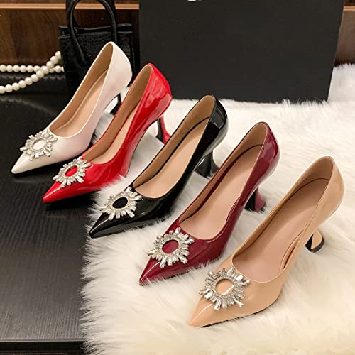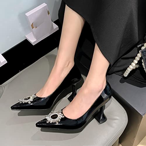 Fabric type: Patent-leatherSole material: RubberOuter material: Faux LeatherClosure type: Pull-On➤MEASUREMENTS】: 3.15 Kitten High Heel; High-Quality Patent Leather Upper Material; Cozy Breathable Microfiber Lining.➤UNIQUE QUALITY & COMFORTABLE】: Womens Ladies Fashion Pointed Toe Pump Dress Shoes, Simple Sleek Sparkly Rhinestone vamp;Slip On Easy On/Off; Casual Anti-slip Lightweight, High Strength, Good Fexibility, Finished with Lightly Cushioned for All Day Comfy and Eco-Friendly Design. Instep ventilation pores for your comfort.➤TRENDY CHIC DESIGN & OUTFITS】: These Trendy Classic Work Office Dress Pumps Shoes are perfect combination for any outfit. Make Any Easy Outfit Look Instantly modern with These Comfortable Fashion Style Boots. add Luxury and Taste, Perfect for dress, short T shirt, skinny jean or jeans, formal school uniforms,etc. -Either way look will be AMAZING!➤ANTI-SLIP RUBBER OUTSOLE】: Rubber Outsole of these Close Toe Pump Shoes have Wear-resistant, Waterproof Non Slip and Shockp roof, Design to stable walking Posture for Cushioning, Stability and Support. Make Sure Your Shoes Can be Used for a Long Time. Perfect for walking around in All Day, Especially for Leisure and Party Office.➤ANY OCCASION】: Suitable for Work Office, Uniform,Business, Prom Party, Wedding, Vacation, Street, Dress Up Pump Shoes. Indoor/Outdoor and Other Daily Use. This women Pump shoes will make the perfect and most stylish gift for all your loved ones and for every occasion. Perfect for everyday use. first-class materials and excellent craftsmanship ensure long-lasting durability.