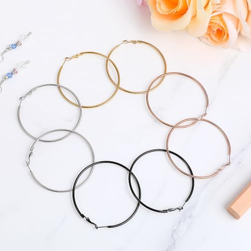 Item width: 10 centimetersMaterial: Stainless SteelMetal type: Stainless SteelBack Finding: Snap BackEarring design: HoopGem type: No Gemstone【Hoop Earrings Set】These stainless steel hoop earrings set offers 4 different colors: gold hoop earrings, silver hoop earrings, rose gold earrings, and black earrings. You can combine them as you like, suitable for everyday use and any special occasion. They will make you more elegant and charming.【Elegant Design】Large Earring diameter 60 mm. These are classic styles that never go out of fashion. Easily put on and take off with a sturdy and secure flexible clasp on the hoop earrings for women. The lightweight design is very comfortable to wear. Even when worn for long periods, they will not feel uncomfortable.【Quality Material】These stainless steel hoop earrings are made of stainless steel, ensuring comfort for women's ears. Rust- and tarnish-resistant. With high-polished surfaces, these hoop earrings can retain their color for a long time. You don't have to worry about fading or rusting. They ensure a durable and comfortable fit.【Easy to Match】Our stainless steel hoop large earrings for women feature a classic yet modern design. The different-colored stainless steel hoop earrings complement most outfits, from daily office attire to evening wear. These hoop earrings will catch others' eyes even if you have long hair. You will look more elegant and charming with these hoops.【Perfect Gift】Stainless steel hoop large earrings are the quintessential must-have addition to every woman's jewelry collection. They can be shared with friends or family, or used as a special gift for Mother's Day, birthdays, business events, weddings, anniversaries, Valentine's Day, or Christmas. Create a sentimental surprise for any wonderful lady - a perfect gift. Perfect for everyday use. first-class materials and excellent craftsmanship ensure long-lasting durability.