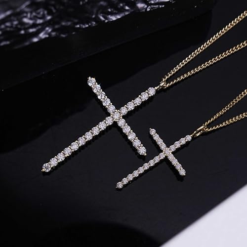 Moissanite Cross Necklace for Women, 925 Sterling Silver Diamond Crucifix Pendant, 14K White Gold Plated Iced Out Jesus Christian Jewelry, Birthday Wedding Christmas Gift (17+2.5” Adjustable Chain, with Box)