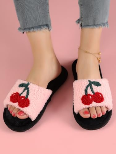 Coquette Cherry Slippers for Women Platform Fluffy Slides Slip On House Slippers Open Toes No Slip Chunky Sole Retro comfortable Cotton Lined Comfort Wear Shoes Home Bedroom Christmas Gifts for Couples