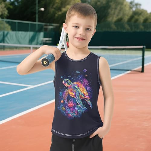 Boys Tank Top Shirts Sea Turtle Ccoral Reef and Fish Sleeveless T-Shirts Crew Neck for Kids Clothing Children 5