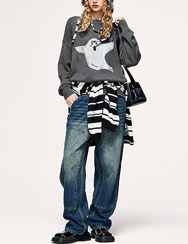 • Style: Cute Halloween sweaters for men and women, crew neck cable knit sweater, gothic long sleeve cable knit jumper, mens y2k aesthetic sweater