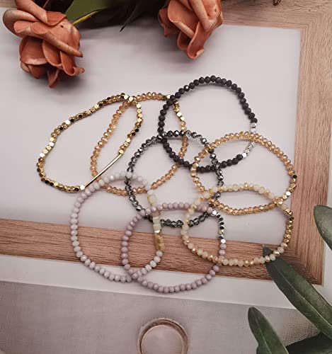 • Stackable Faceted Beaded Bracelet Set: Package includes 28 pcs different colorful delicate boho beaded multi layer versatile statement crystal bracelets in 2 styles ,chic and distinctive faceted beaded bracelet, brings positive attitude to your life