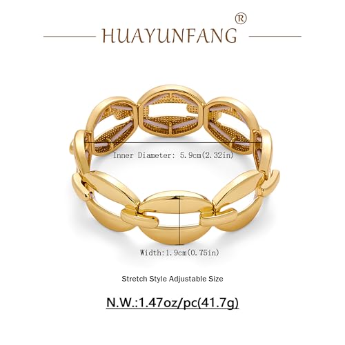 • Trendy Jewelry Influence: With its bold link design and chunky profile, this thick hip-hop gold stretch bracelet for women is the superb finishing touch for a powerful, fashion-forward look