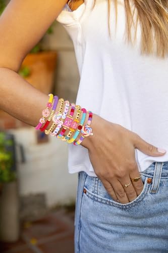Material: ClayMetal type: No Metal TypeClasp type: NoChain type: Bead ChainGem type: No gemstoneIrresistibly Fun: Indulge in a sprinkle of sweetness with our kawaii candy heishi clay bracelet set! These irresistibly cute stackable bracelets combine playful lollipop, sweet candy, donut, and dessert charms with smooth clay beads for a lightweight, colorful accessory that’s as fun to wear as it is to mix-and-match.Colorful Candy Bracelets Material: Funny lollipop candy layering friendship bracelets are made of polymer clay, gold bead, letter beads and various candy charms ,lightweight,waterproof and safety to wear.Do not irritate your skin.cute,stylish and stretch.provide a variety of styles to choose and suit for daily wear.Fun Accessory: Sweet candy lollipop bracelets are exquisite for everyday wear, adding a touch of sparkle and style to your wrist. They pair well with a summer dress or a t-shirt and jeans, perfect for adding whimsy to casual outfits – or as a playful Trick or treat accent for Halloween festivities! Whether you're rocking a whimsical Halloween costume or joining candy-hunting adventures, these colorful charms bring sugary magic to your wrist, blending everyday charm with spooky-season fun.Fashion Choice: These candy donut heishi clay beaded stretch bracelets work for any situation. They’re great for hanging out at home, going to the beach, attending parties, or just running errands. You can wear them alone for a subtle look or stack a few for more impact. They're practical and versatile, fitting well with any daily routine or special eventPerfect Gift: These novelty lollipop candy holiday party bracelets make a great gift idea. Whether for yourself or someone special friends, family, classmates, or colleagues they’re a fun and thoughtful choice. Perfect for any occasion, they’re sure to be appreciated by anyone who loves stylish accessories Perfect for everyday use. premium materials and excellent craftsmanship ensure long-lasting durability.