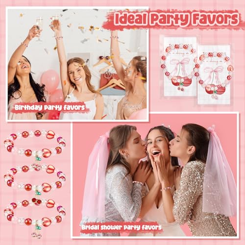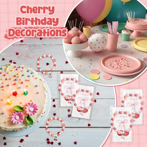 Quelay 25 Sets Cherry Bracelets Gift with Thank You Cards Bulk Bridal Shower Party Favor Cherry Themed Party Decoration for Women Bridesmaids Baby Shower Birthday Friendship Jewelry (Cute,Pink,Red)