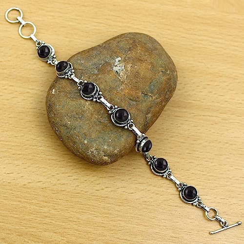 sizzling ! Round Shape Natural & Synthetic Gemstones Silver Plated Bracelets for Women - Vintage Bohemian Style Handmade Birthstone Adjustable Link Bracelet Jewelry Gifts for Wedding Anniversary Mother's Day