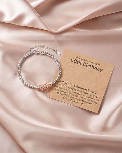 • [ 60th Birthday Gifts for Women ] This bracelet features six stunning rose gold rings, each ring representing a decade of life, symbolizing the richness of 60 years of memories and experiences