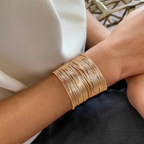 BROCC 6PCS Gold Cuff Upper Arm Band Bracelets for Women Gold Wrist Cuff Wrap Wide Wire Bracelet Open Adjustable Armband Set 6