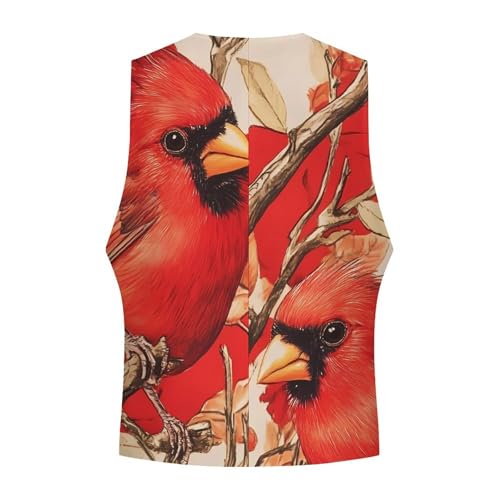 Cardinal Cute Bird Suit Vest for Men Waistcoat Dressy V Neck Button Down Sleeveless Business Jacket Coat 1