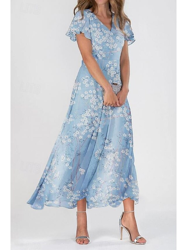 sizzling ! Women's Maxi Dress A Line Dress Elegant Daily Date Regular Fit Floral V Neck Blue Summer