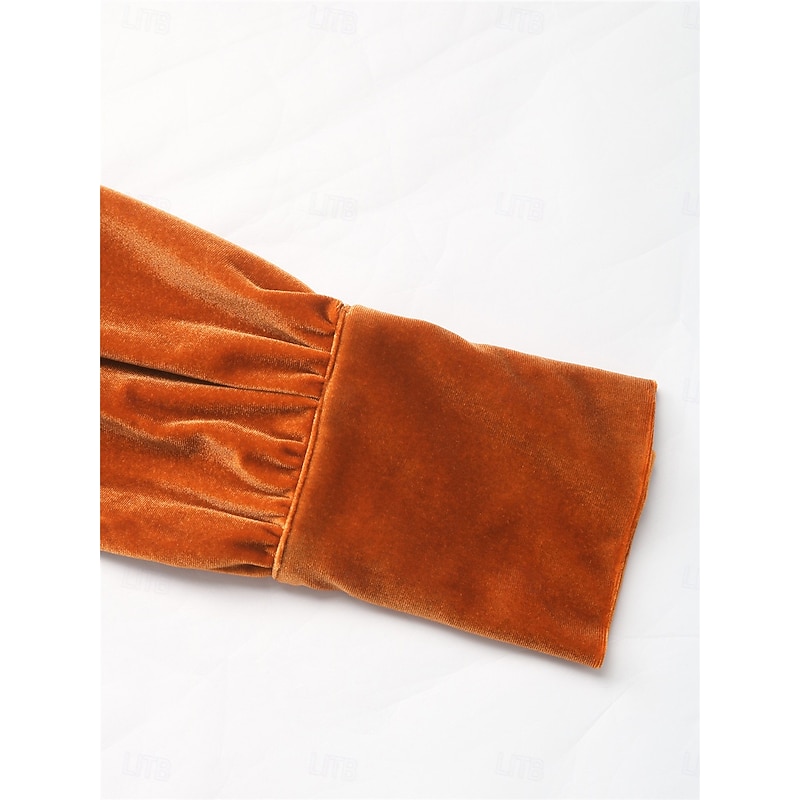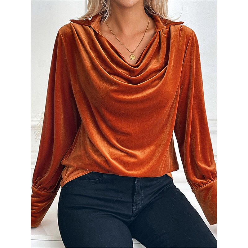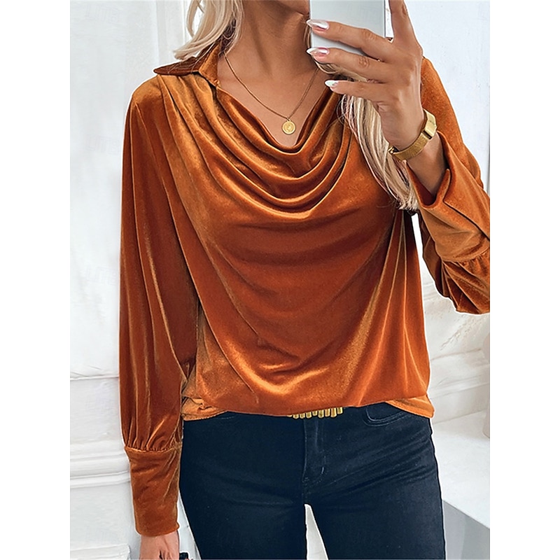 Women's Shirt Velvet Elegant Dressy Solid Color Casual Long Sleeve Cowl Neck Regular Tops Daily Brown Fall Winter
