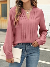 Highlights [Fabric] Crafted from a luxurious blend of spandex and polyester, this women's blouse offers a micro-elastic fit with a delicate crinkled texture that enhances its modern appeal. The fabric is lightweight and breathable, ensuring comfort throughout Spring and Fall seasons. [Fit] Designed with a form-fitting silhouette, this blouse provides a flattering and modern look that's perfect for both professional and casual settings. The relaxed fit and long sleeves ensure comfort and versatility, making it suitable for a wide range of body types. [Design Highlights] Featuring a sophisticated ruched front and a notched neckline, this blouse exudes elegance and charm. The modern bishop sleeves add a touch of refinement, while the solid rose pink color enhances its timeless appeal. [Occasions] Ideal for work environments, casual outings, or any setting where style and comfort are essential. Whether paired with jeans for a casual day out or a skirt for a polished office look, this blouse offers versatility and effortless elegance. [Size Range] Available in sizes S, M, L, XL, and 2XL, catering to a variety of body types and preferences, ensuring a perfect fit for every woman. Perfect for everyday use. superior materials and excellent craftsmanship ensure long-lasting durability.