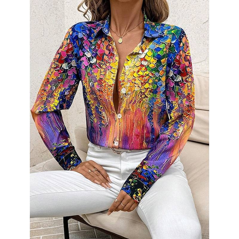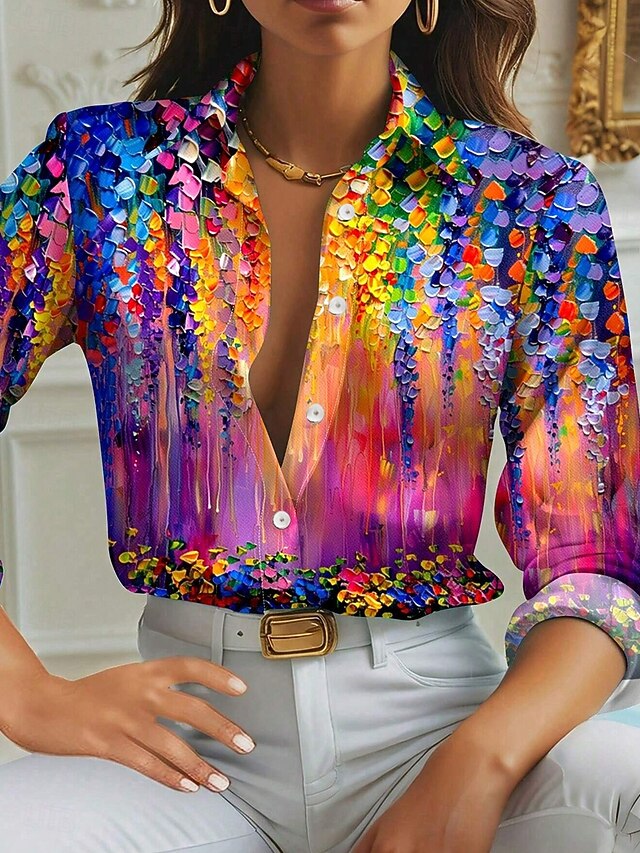 More information about Women's Shirt Button Down Tunic Shirt Collar Long Sleeve Floral Casual Regular Tops Work Daily s Print Pink Red Blue Green Spring Fall Winter