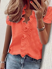 More information about Women's Shirt Solid Color Plain Elegant Tropical Daily Short Sleeve V Neck Regular Tops Daily Holiday Beach Wear Ruffle White Orange Green Light Blue Summer Spring