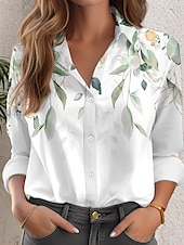 More information about Women's Shirt Button Down Tunic Shirt Collar Long Sleeve Floral Casual Regular Tops Work Daily s Print White Spring Fall Winter
