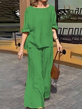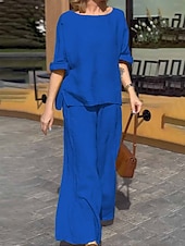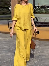 More information about Women's Fashion Streetwear Daily Shirt Blouse Wide Leg Pants Long Sleeve Crew Neck Plain Casual Daily Yellow Blue Green Spring & Fall Regular Fit
