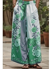 sizzling ! Women's Culottes Wide Leg Wide Leg Vacation Vintage Ethnic Style Full Length High Waist Floral Graphic prompt Dry Breathability silky Inelastic Formal Outdoor Vacation Pink Red Blue Green Fall