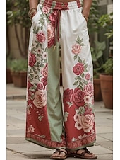Women's Culottes Wide Leg Wide Leg Vacation Vintage Ethnic Style Full Length High Waist Floral Graphic Quick Dry Breathability Soft Inelastic Formal Outdoor Vacation Pink Red Blue Green Fall 2