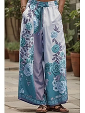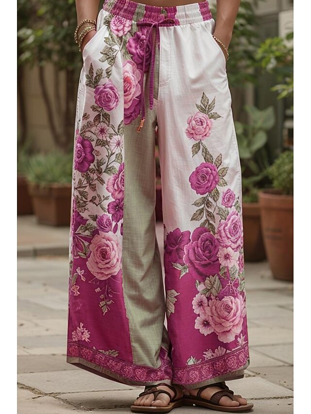 Women's Culottes Wide Leg Wide Leg Vacation Vintage Ethnic Style Full Length High Waist Floral Graphic Quick Dry Breathability Soft Inelastic Formal Outdoor Vacation Pink Red Blue Green Fall 9