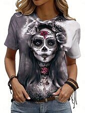 More information about Halloween Women's T Shirt Skulls Tee Print Casual Short Sleeve Crew Neck Gray Summer