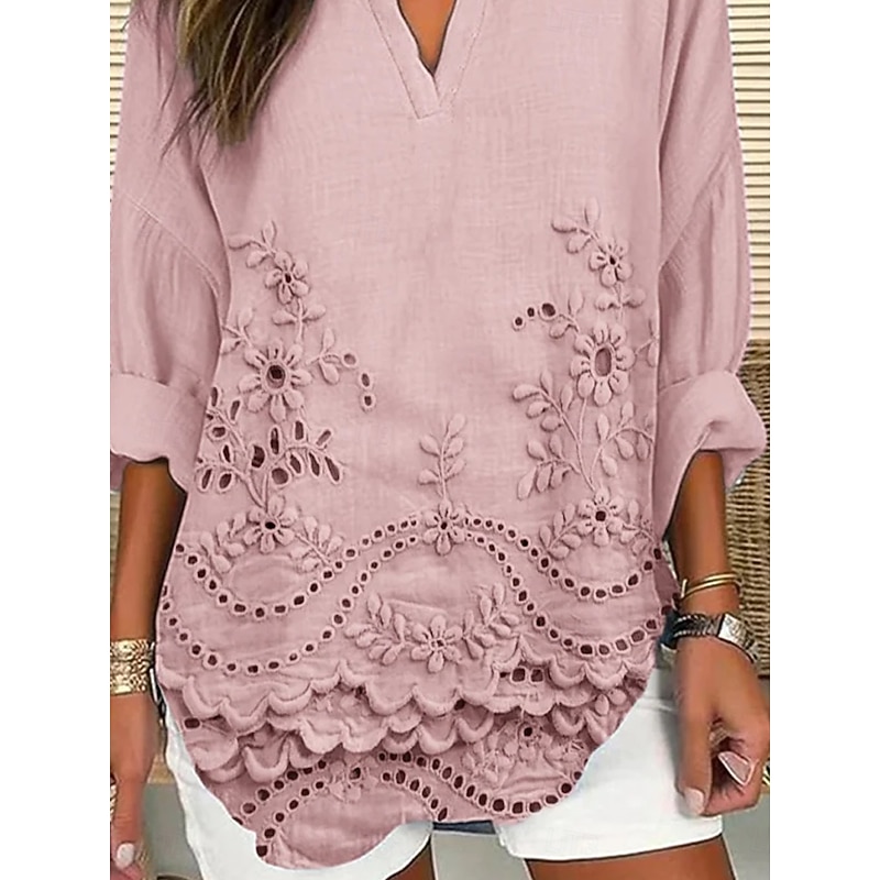 sizzling ! Women's Blouse Tunic V Neck Long Sleeve Boho Casual Tops 3D Print Graphic Basic Regular Tops Daily Buttons Print Pink Light Blue
