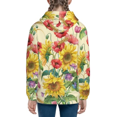 Sunflower Cornflower Poppy Kids Pullover Hoodies Boys Zip Up Sweatshirts Girls Athletic Clothes with Pocket 5