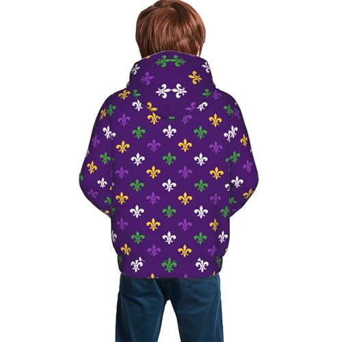 Purple Mardi Gras Kids Pullover Hoodies Boys Sweatshirts Girls Athletic Clothes with Pocket 4