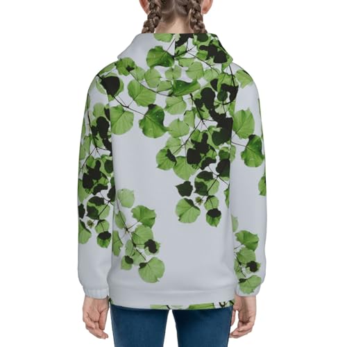 Watercolor Green Leaves Kid Hoodies Boys Zip Up Sweatshirts Girls Pullover with Pocket 5