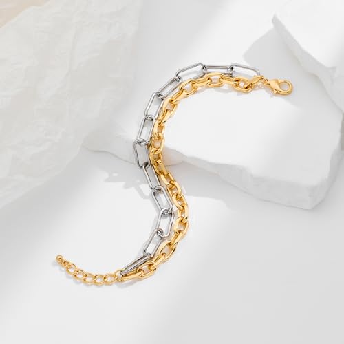 Two Tone Bracelets for Women Silver and Gold Bracelets Gold Plated Two Layering Link Beacelet Minimalist Trendy Jewelry 5