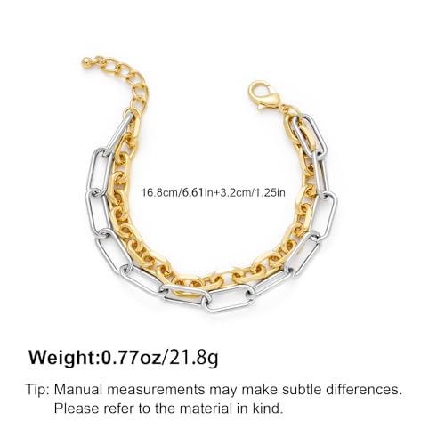 More information about Two Tone Bracelets for Women Silver and Gold Bracelets Gold Plated Two Layering Link Beacelet Minimalist Trendy Jewelry