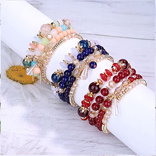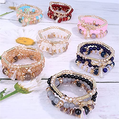 YADOCA 7 Sets Bohemian Stackable Beaded Bracelets for Women Men Boho Stretch Multilayered Bead Bangles Bracelet Set with Charm Multicolor Statement Jewelry