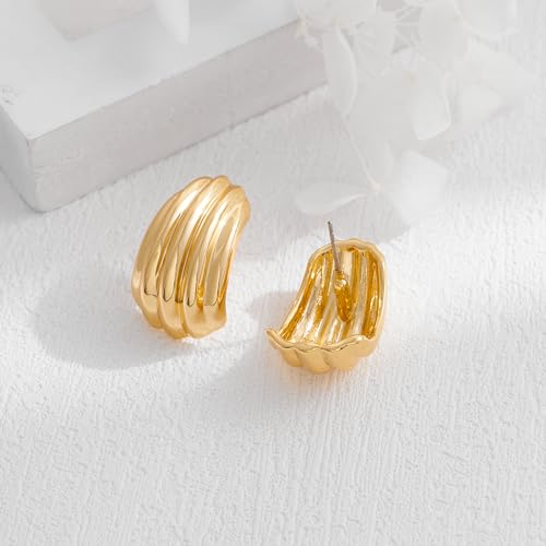 MUYAN Chunky Gold Textured Earrings for Women Trendy Minimalist Large Chunky Studs Fashion Jewelry 6