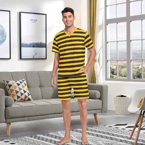 Laprad Men's Bumble Bee Stripe Pajamas Set Short Sleeve Sleepwear Two Piece Loungewear V-Neck with Pockets 2