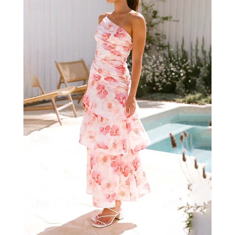 This Women's Long Dress Maxi Dress Floral Dress Print Dress Fashion present-day Outdoor Vacation Holiday Regular Fit Flower Sleeveless One Shoulder Pink Blue Light Purple Light Blue Summer combines elegant design with practical functionality. Every detail has been carefully considered to ensure you get the best possible experience. The excellent construction means this product will serve you well for years to come.