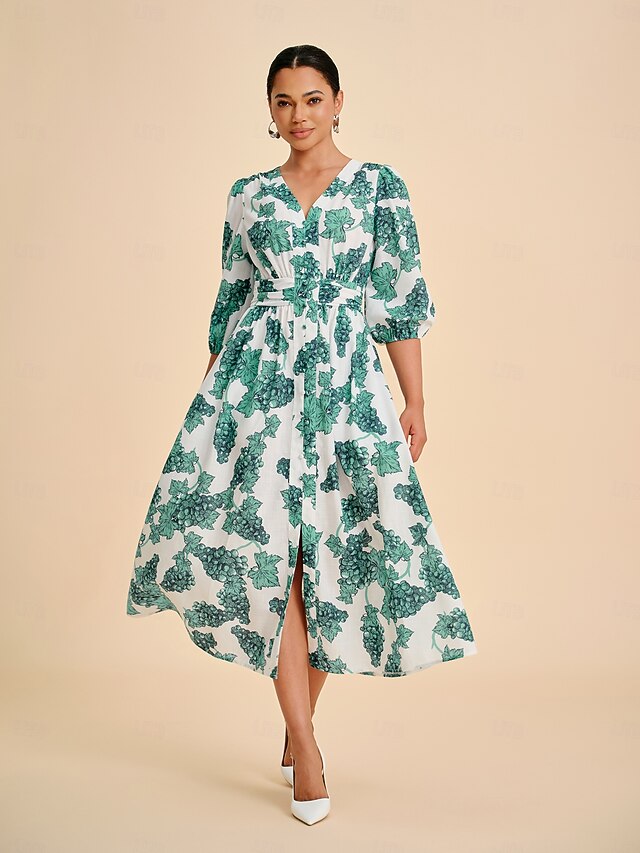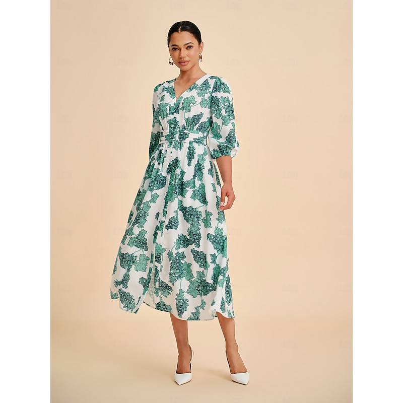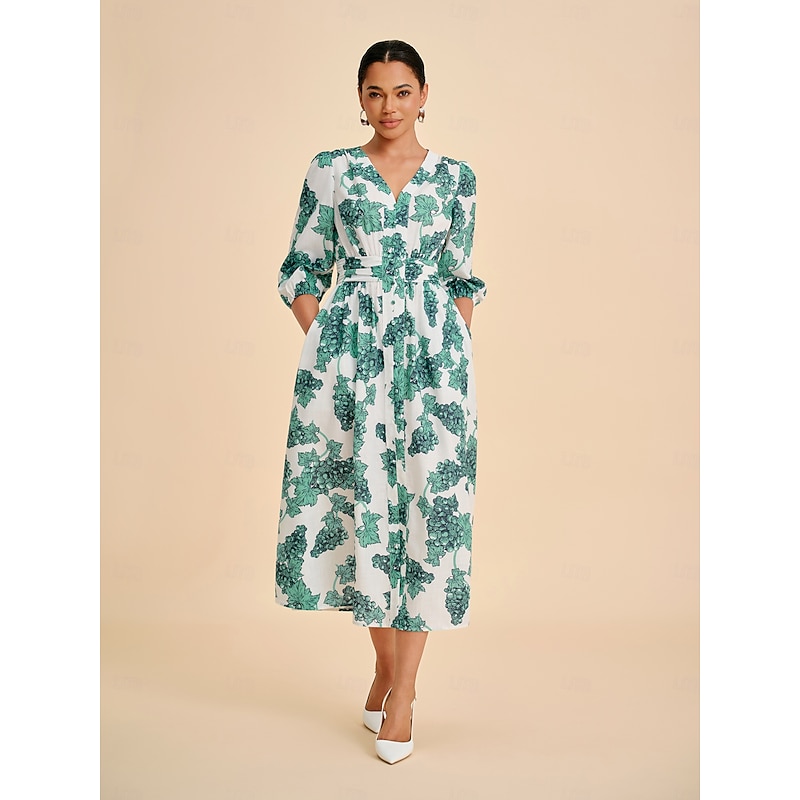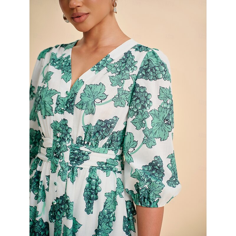 More information about Women's Teal Green Printed Linen-Effect Maxi Dress