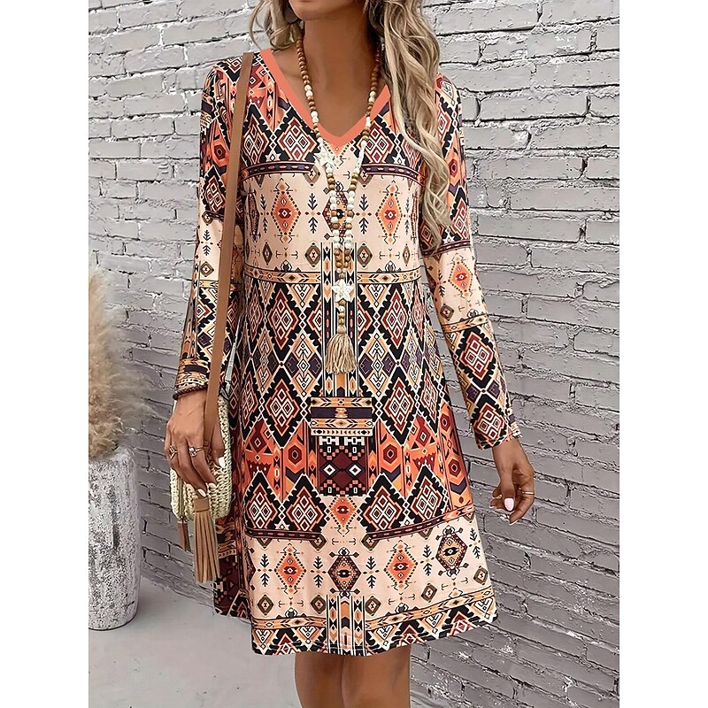 This Women's Mini Dress Casual Dress Sundress A Line Dress sleek Casual Regular Fit Graphic Geometric Long Sleeve V Neck Ice Blue Yellow Wine Dusty Blue Spring Fall combines elegant design with practical functionality. Every detail has been carefully considered to ensure you get the best possible experience. The excellent construction means this product will serve you well for years to come.