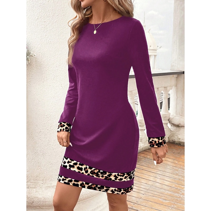 This Women's Mini Dress Sheath Dress Casual Daily Regular Fit Leopard Long Sleeve Crew Neck Black Navy Blue Purple Summer Winter combines elegant design with practical functionality. Every detail has been carefully considered to ensure you get the ultimate possible experience. The first-class construction means this product will serve you well for years to come.