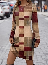 Why Choose Women's Mini Dress T Shirt Dress Tee Dress Shift Dress Casual Daily Regular Fit Graphic Geometric Long Sleeve Crew Neck Red Blue Purple Brown Spring Fall Winter?